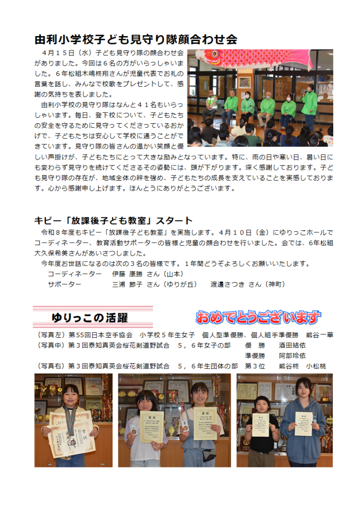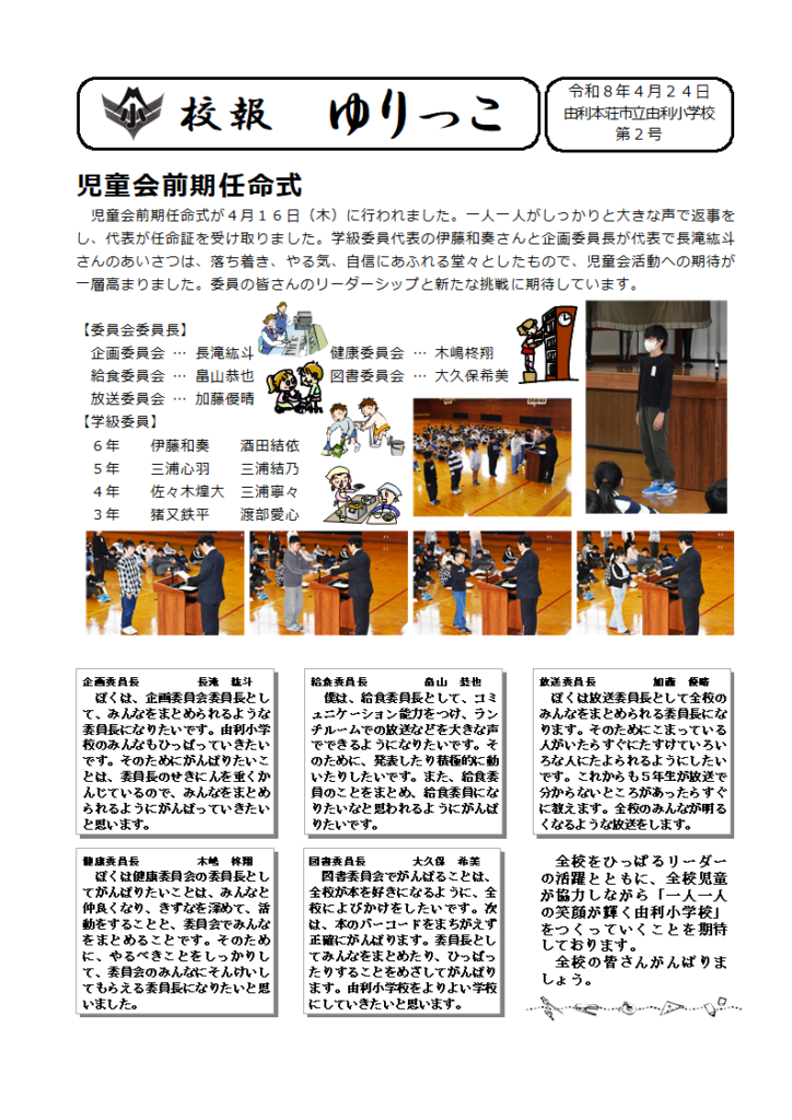 以前の記事へ:由利小学校報「ゆりっこ」第1号