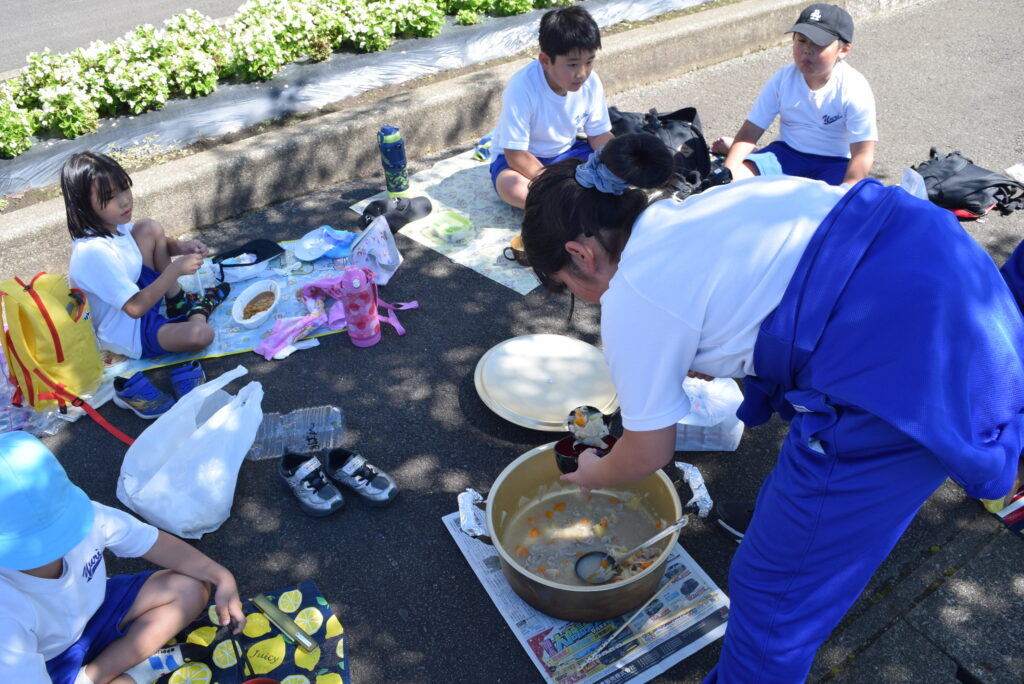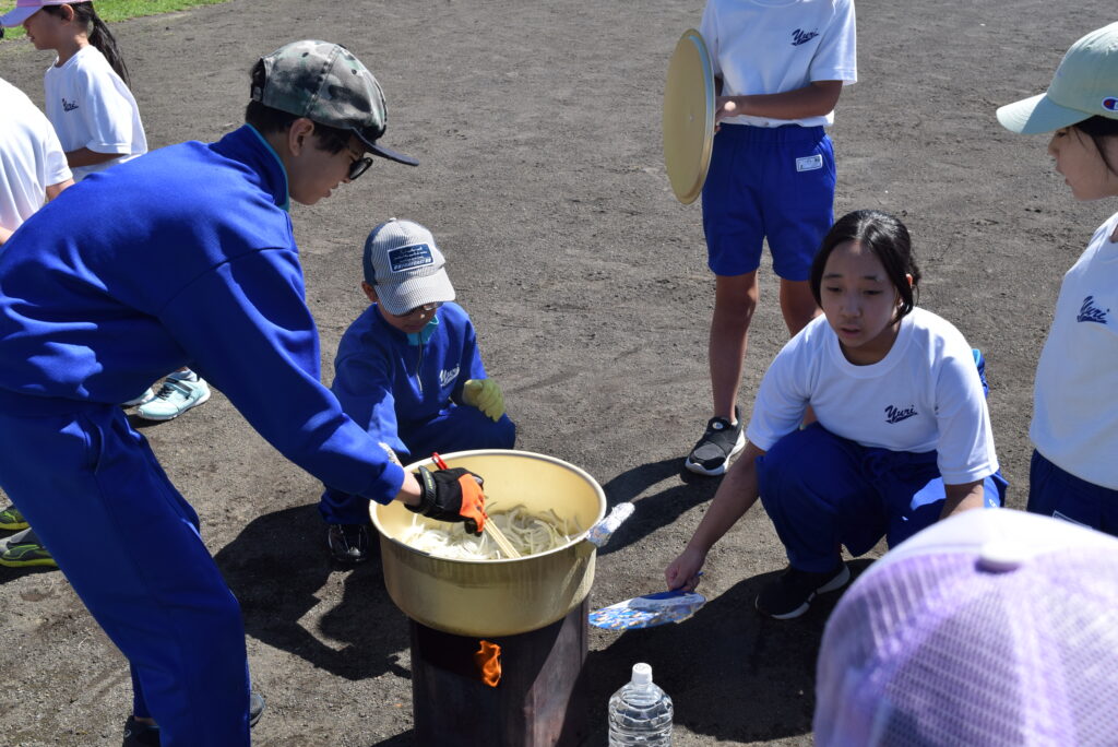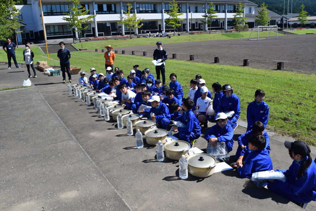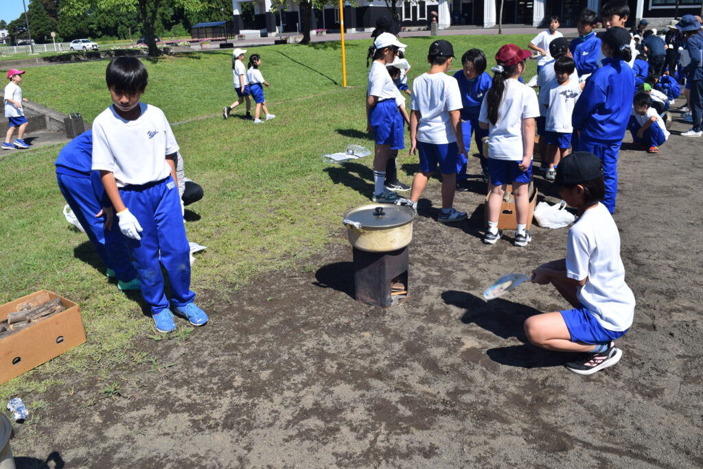 気持ちよい秋空の下、由利小学校恒例のなべっこ遠足を行いました。今回は、クマやサルの出没が頻繁なことからの懸念と熱中症の防止から、学校の敷地内で行いました。「遠足」とはいきませんでしたが、みんなで協力して野外炊飯をしたり、レクリエーションゲームを楽しんだりして、みんなが心地よいひとときとなりました。
