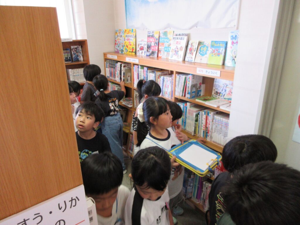 2年生が生活科の学習で、由利図書館にたんけんに出かけました。あらかじめ聞いてみたいことをまとめていたため、とてもスムーズに学習できました。学校にある本とは異なる本がたくさんあったため、「また行ってみたい」「本を借りに来たい」という声が聞かれました。