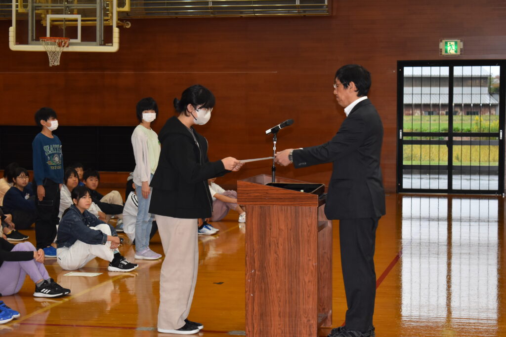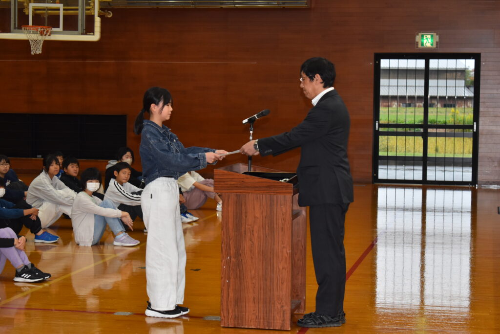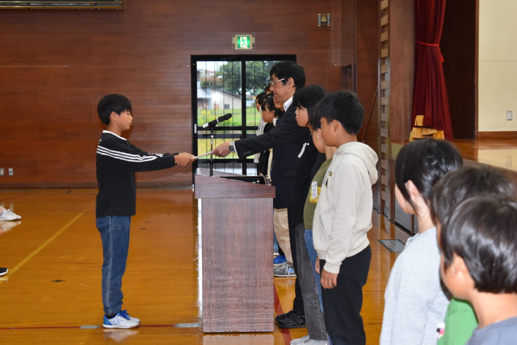 学校を動かす動力源であり、歯車でもある児童会において、各学級員と各委員会が後期に新しいメンバーになりました。早速その任命式が行われ、名前を呼ばれると全員素晴らしい返事をすることができました。校長先生から任命証を受け取り、由利小学校のまた新たな一歩が始まります。