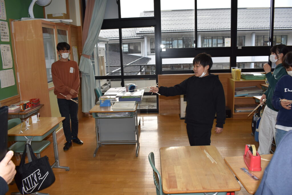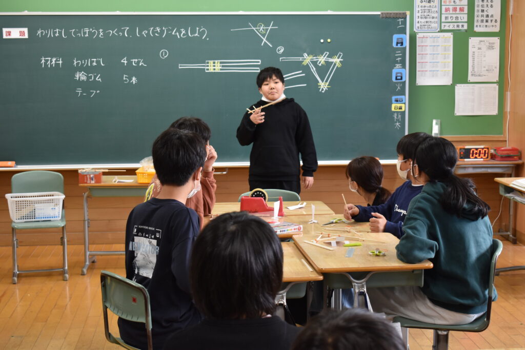 ゆり支援学校に通う同郷同学年のお友達が、学校に交流にいらっしゃいました。学校は異なっていてもふるさとは同じ。6年生が考えた工作とゲームで交流を深めることができたひとときでした。