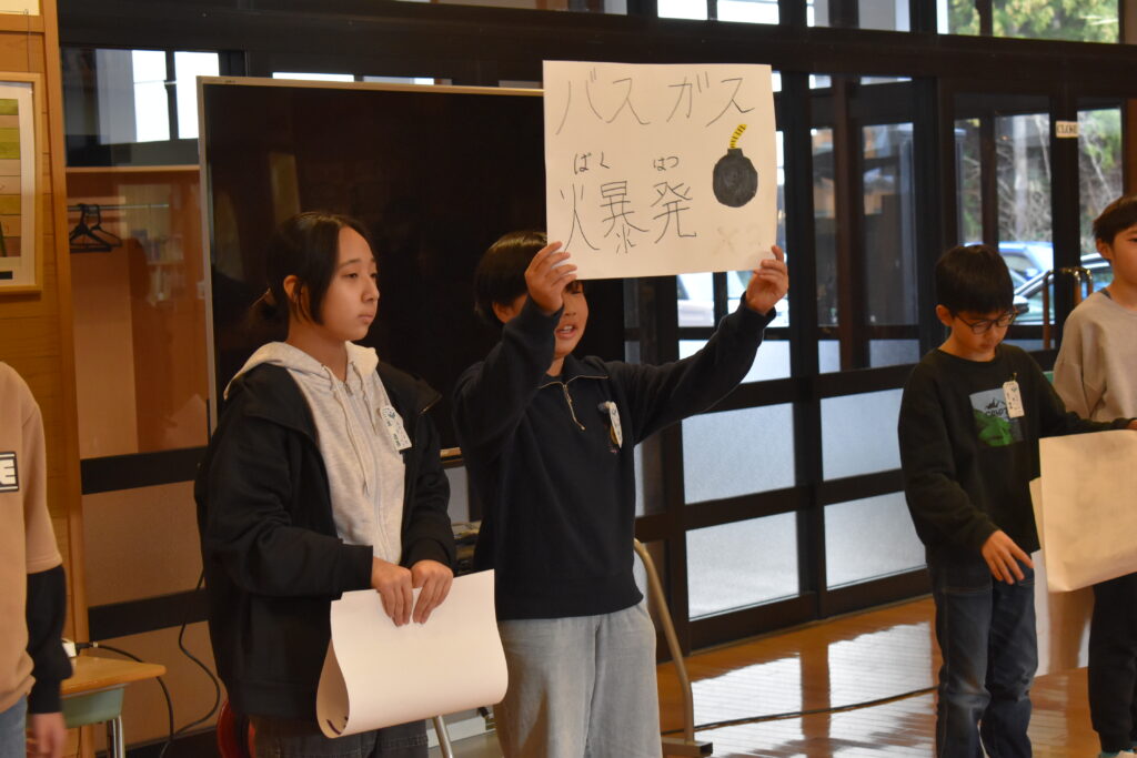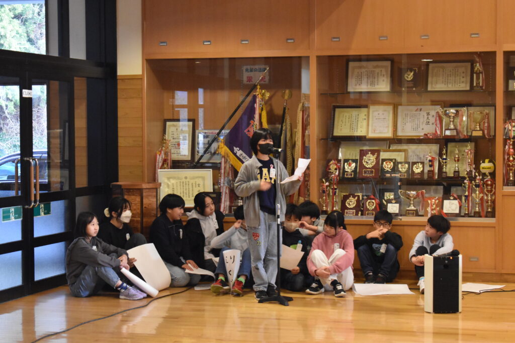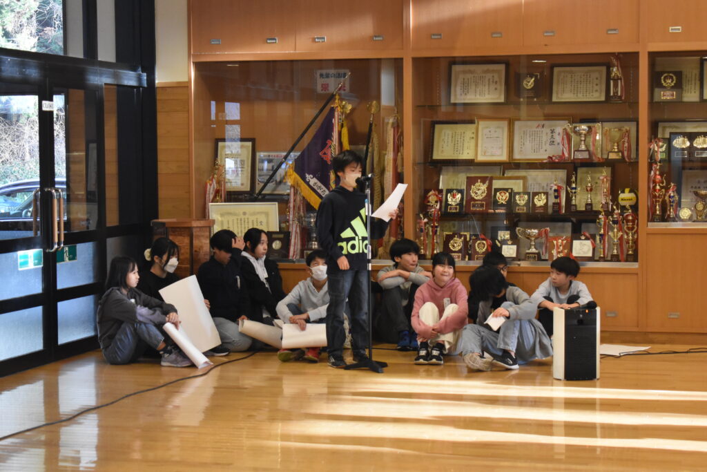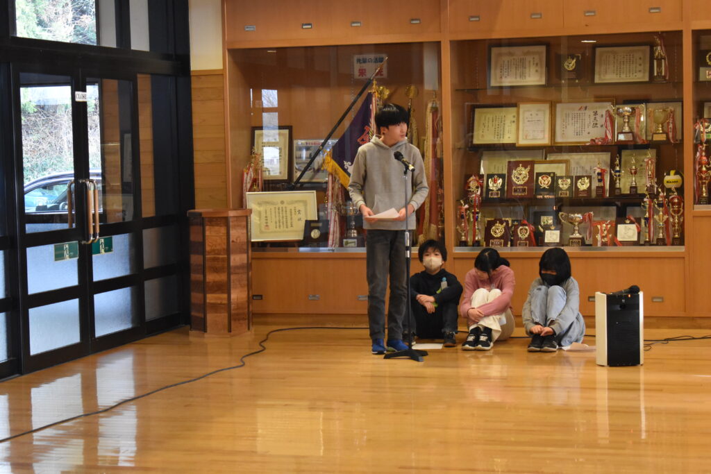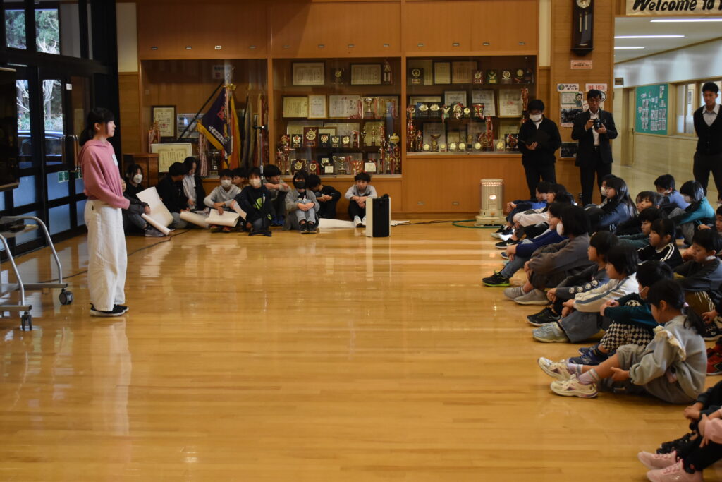 委員会からの発表を全校で楽しむ「児童集会」が行われました。今回の担当は放送委員会と図書委員会です。放送委員会は滑舌をよくするための「早口言葉」を学年毎の課題で挑戦し、図書委員会はクリスマスにちなんだ絵本の読み聞かせをしてくれました。朝の楽しいひとときでした。