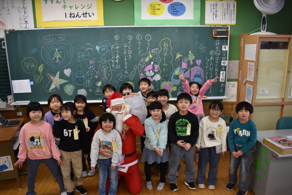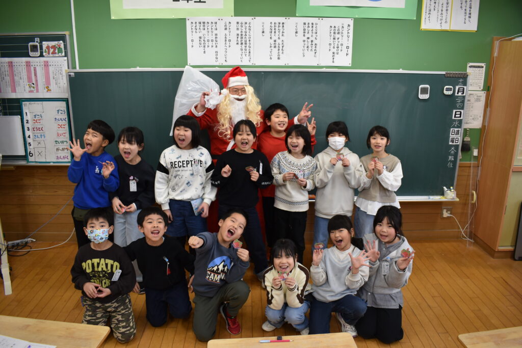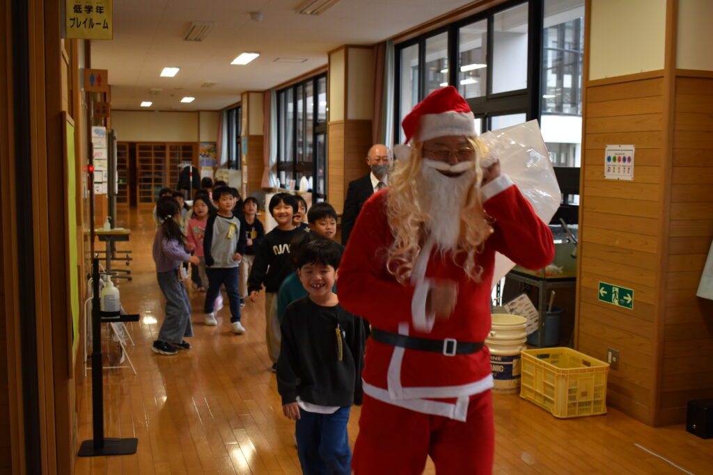 クリスマスイブのこの日、フィンランドからサンタクロースがやってきて、子どもたちにプレゼントを届けてくれました。子どもたちは、驚きと共に大喜びです。子どもたちはサンタクロースと英語で会話しました。Thank you & See you next year.