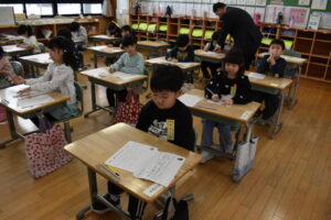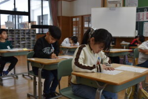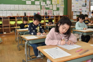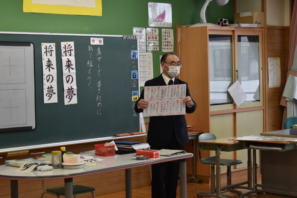 由利教育学習課のご協力の下、地域からご指導いただく先生を招いて、毎年恒例の書き初め大会を行いました。1、2年生は硬筆、3~6年生は毛筆です。地域の先生方のご指導に気を引き締め、姿勢を正して書き初めができました。由利小学校の伝統であり、新しい1年が始まる実感が沸きました。地域の先生方、ご指導本当にありがとうございました。